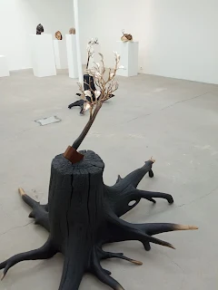Mais nous voici rue Pastourelle, et au fond d'une cour somptueuse ( hôtel particulier XVIIIè, une merveille ) la galerie Rabouan Moussion expose une étrange forêt, sculptures, bronzes, découpages, et même une vidéo où l'on découvre une table de nuit aux jambes de cerf qui traverse un bois...magie !